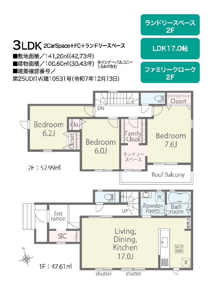 | 土地面積 | 141.26m² | 土地面積計測方式 | |